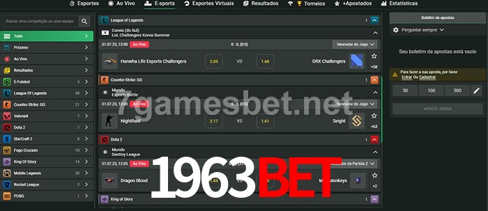 O 1963bet oferece uma grande seleção de opções de apostas em e-sports com probabilidades competitivas